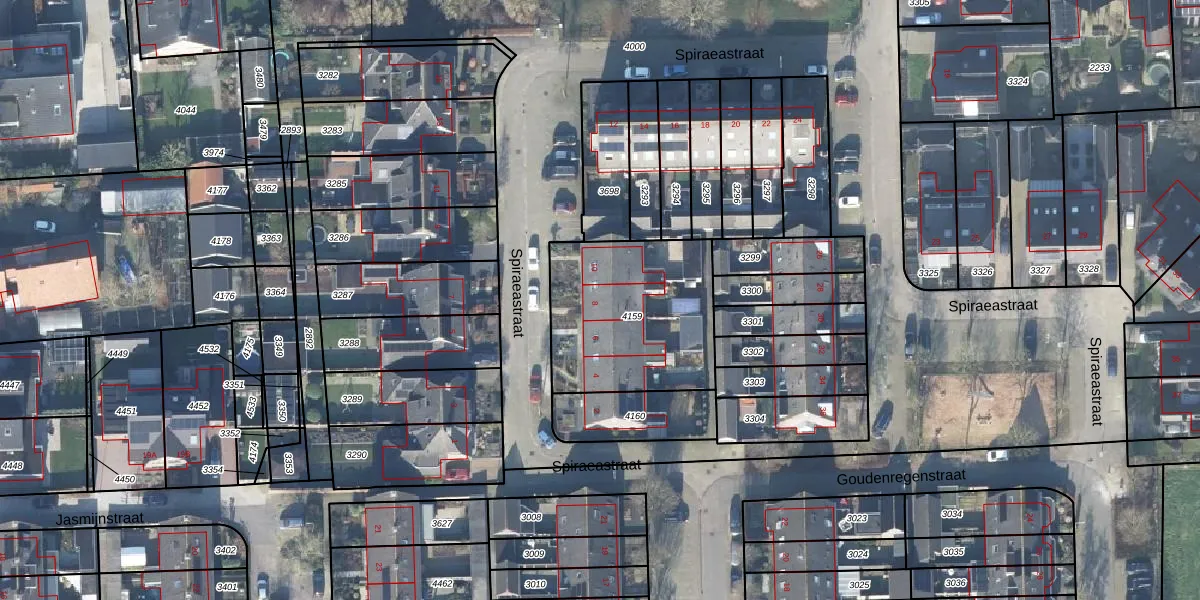 Het perceel waarop Spiraeastraat 8 staat heeft een oppervlakte van 678 m². Dit is een groot perceel. De perceeloppervlakte wordt geregistreerd door het Kadaster. Gedetailleerde informatie over de maten van dit perceel kunt u vinden in het rapport Kadastrale kaart met maatvoering van Spiraeastraat 8.
