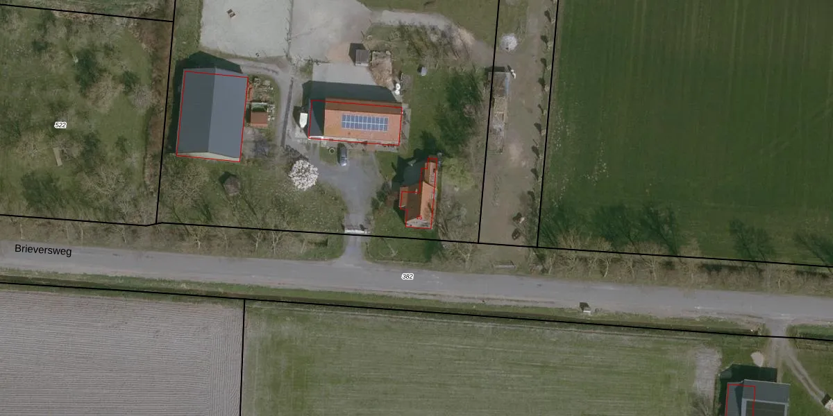 Brieversweg 15 is gelegen op kadastraal perceel ADB00K556. Deze kadastrale aanduiding is uniek en wordt gebruikt door het Kadaster om eigendomsrechten en andere zakelijke rechten vast te leggen. Het perceel maakt onderdeel uit van de kadastrale gemeente Aardenburg.