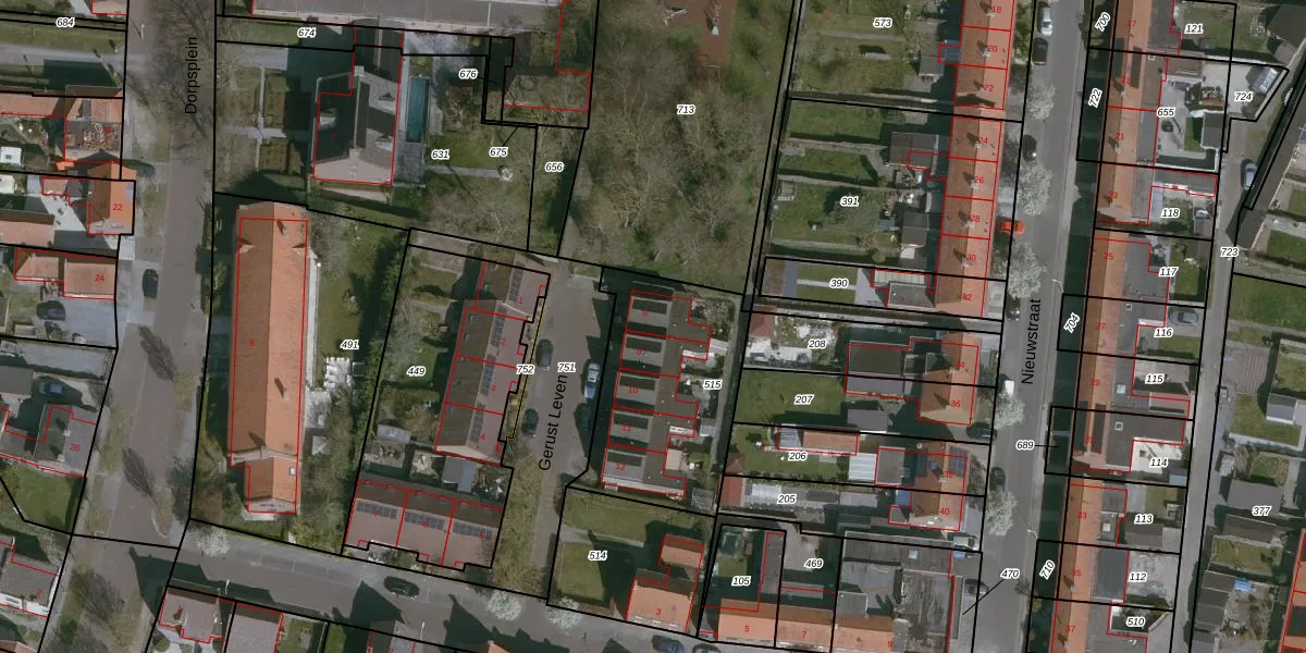 Het perceel waarop Gerust Leven 8 staat heeft een oppervlakte van 718 m². Dit is een groot perceel. De perceeloppervlakte wordt geregistreerd door het Kadaster. Gedetailleerde informatie over de maten van dit perceel kunt u vinden in het rapport Kadastrale kaart met maatvoering van Gerust Leven 8.