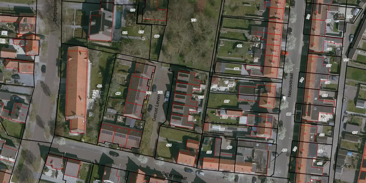 Gerust Leven 9 is gelegen op kadastraal perceel ADB00F515. Deze kadastrale aanduiding is uniek en wordt gebruikt door het Kadaster om eigendomsrechten en andere zakelijke rechten vast te leggen. Het perceel maakt onderdeel uit van de kadastrale gemeente Aardenburg.