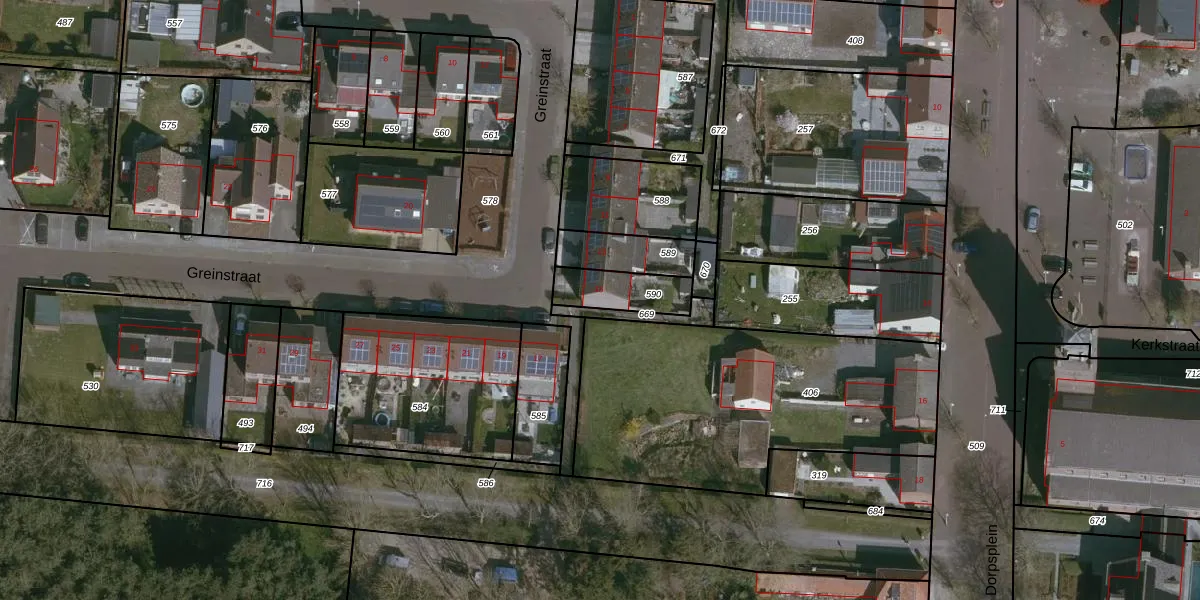 Greinstraat 15 is gelegen op kadastraal perceel ADB00F590. Deze kadastrale aanduiding is uniek en wordt gebruikt door het Kadaster om eigendomsrechten en andere zakelijke rechten vast te leggen. Het perceel maakt onderdeel uit van de kadastrale gemeente Aardenburg.
