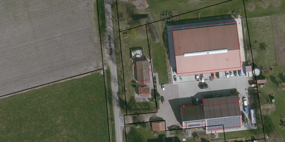 Het perceel waarop Nieuwe Weg 2-B staat heeft een oppervlakte van 1225 m². Dit is een zeer groot perceel. De perceeloppervlakte wordt geregistreerd door het Kadaster. Gedetailleerde informatie over de maten van dit perceel kunt u vinden in het rapport Kadastrale kaart met maatvoering van Nieuwe Weg 2-B.