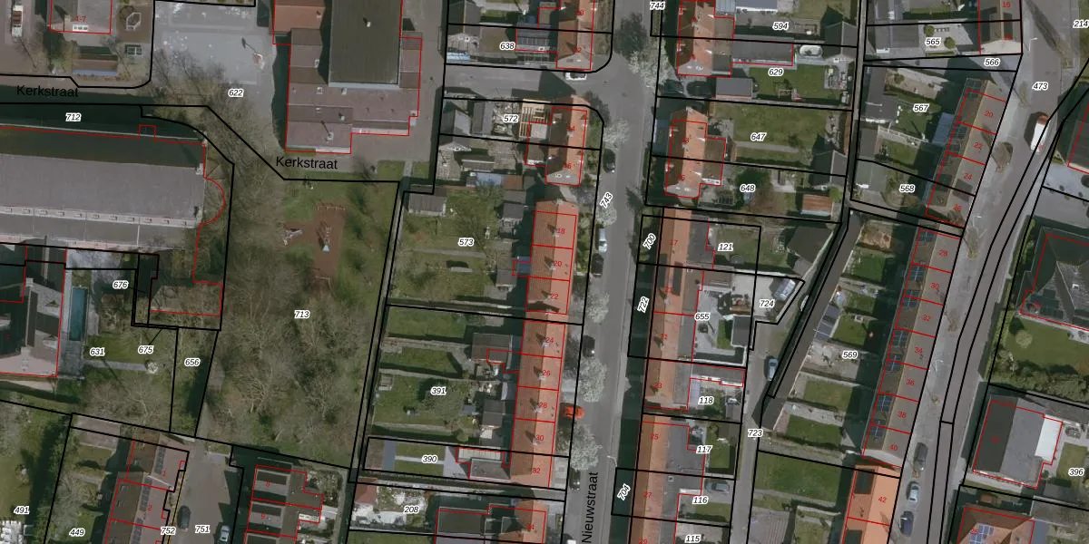 Het perceel waarop Nieuwstraat 20 staat heeft een oppervlakte van 1092 m². Dit is een zeer groot perceel. De perceeloppervlakte wordt geregistreerd door het Kadaster. Gedetailleerde informatie over de maten van dit perceel kunt u vinden in het rapport Kadastrale kaart met maatvoering van Nieuwstraat 20.