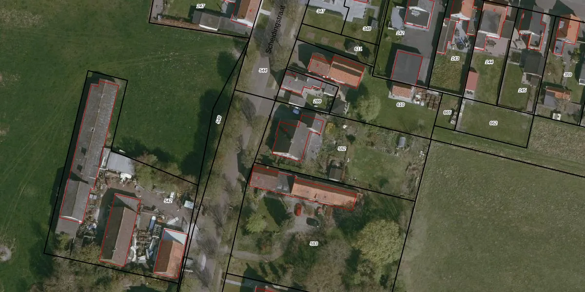 Scheidingstraat 7-A is gelegen op kadastraal perceel ADB00F592. Deze kadastrale aanduiding is uniek en wordt gebruikt door het Kadaster om eigendomsrechten en andere zakelijke rechten vast te leggen. Het perceel maakt onderdeel uit van de kadastrale gemeente Aardenburg.
