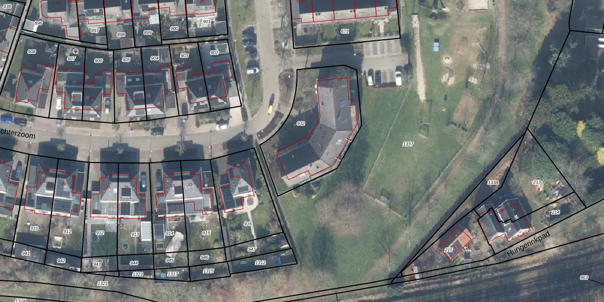 Het perceel waarop Achterzoom 13 staat heeft een oppervlakte van 905 m². Dit is een groot perceel. De perceeloppervlakte wordt geregistreerd door het Kadaster. Gedetailleerde informatie over de maten van dit perceel kunt u vinden in het rapport Kadastrale kaart met maatvoering van Achterzoom 13.