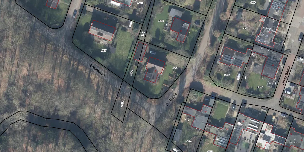 Gebruik de zoekbalk of klik op een perceel voor informatie over de adressen binnen dit perceel.