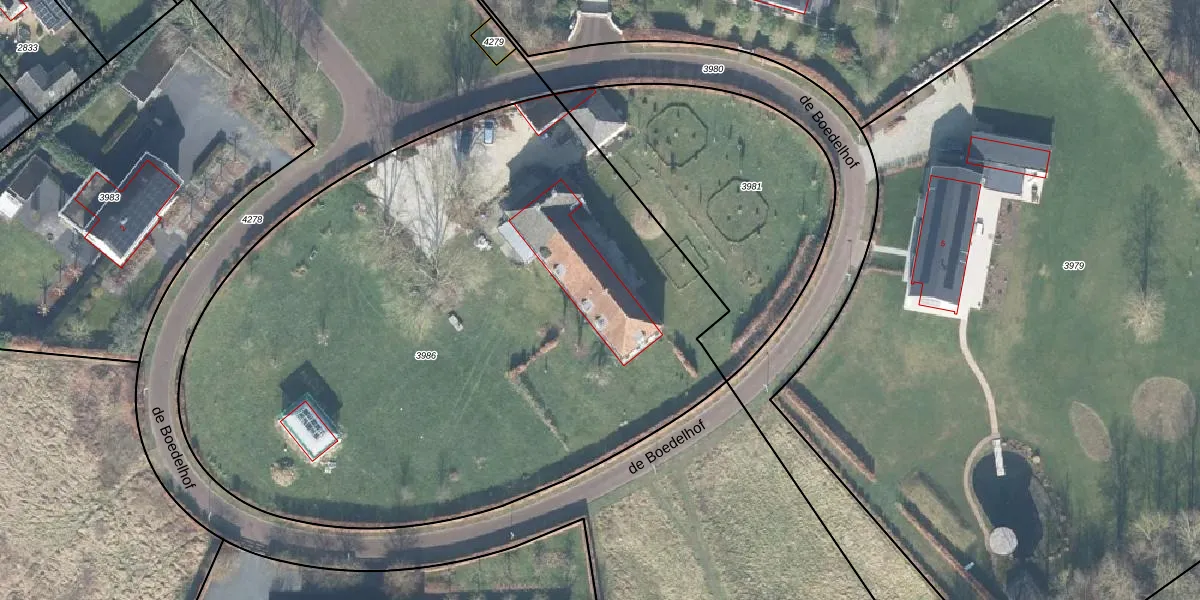 de Boedelhof 1 is gelegen op kadastraal perceel GSL01D3986. Deze kadastrale aanduiding is uniek en wordt gebruikt door het Kadaster om eigendomsrechten en andere zakelijke rechten vast te leggen. Het perceel maakt onderdeel uit van de kadastrale gemeente Gorssel.