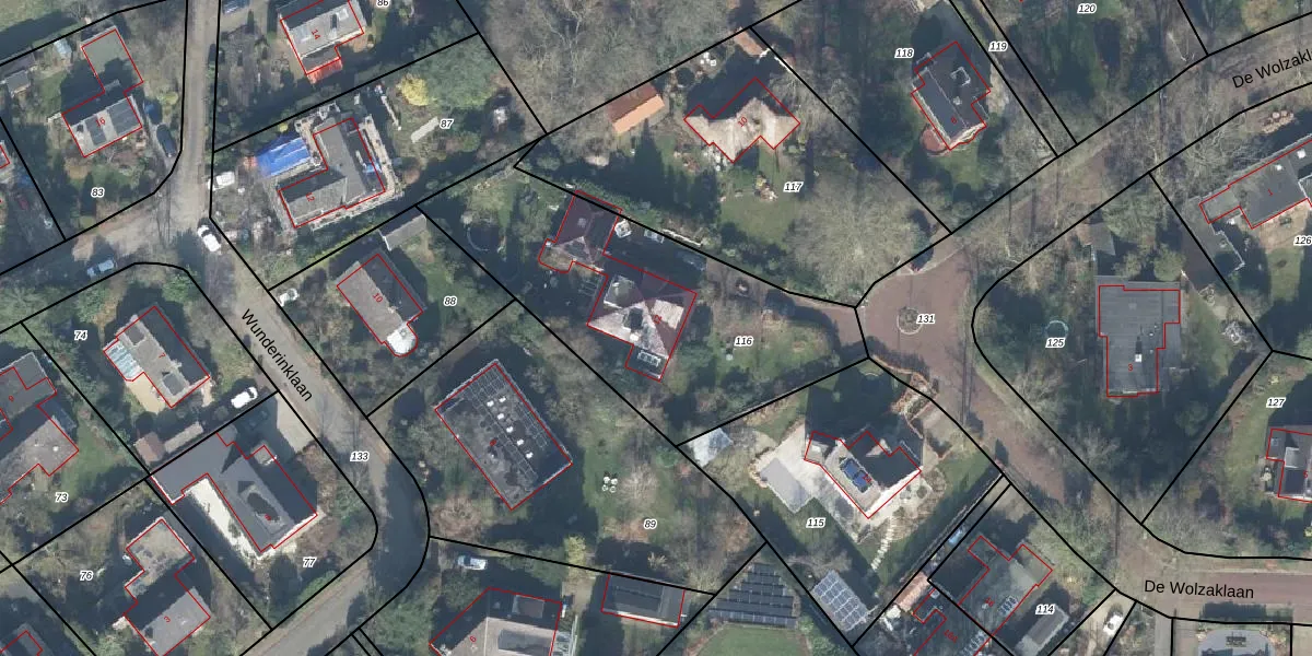 Gebruik de zoekbalk of klik op een perceel voor informatie over de adressen binnen dit perceel.