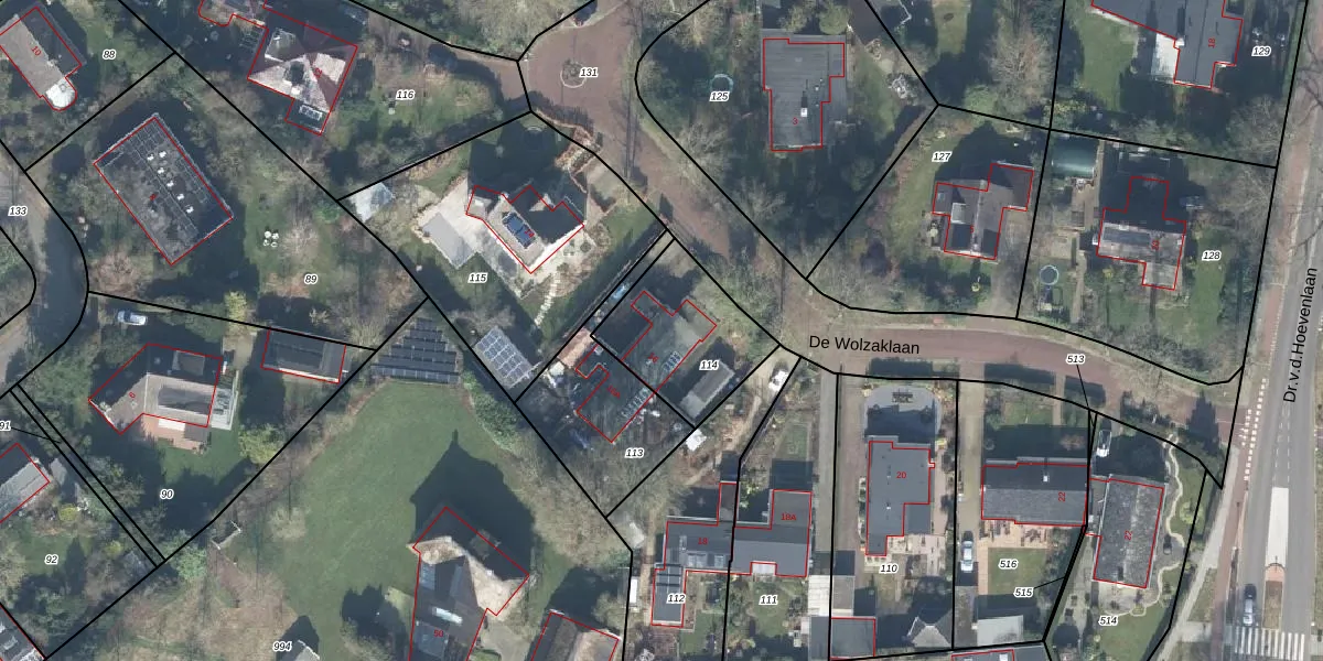 Gebruik de zoekbalk of klik op een perceel voor informatie over de adressen binnen dit perceel.
