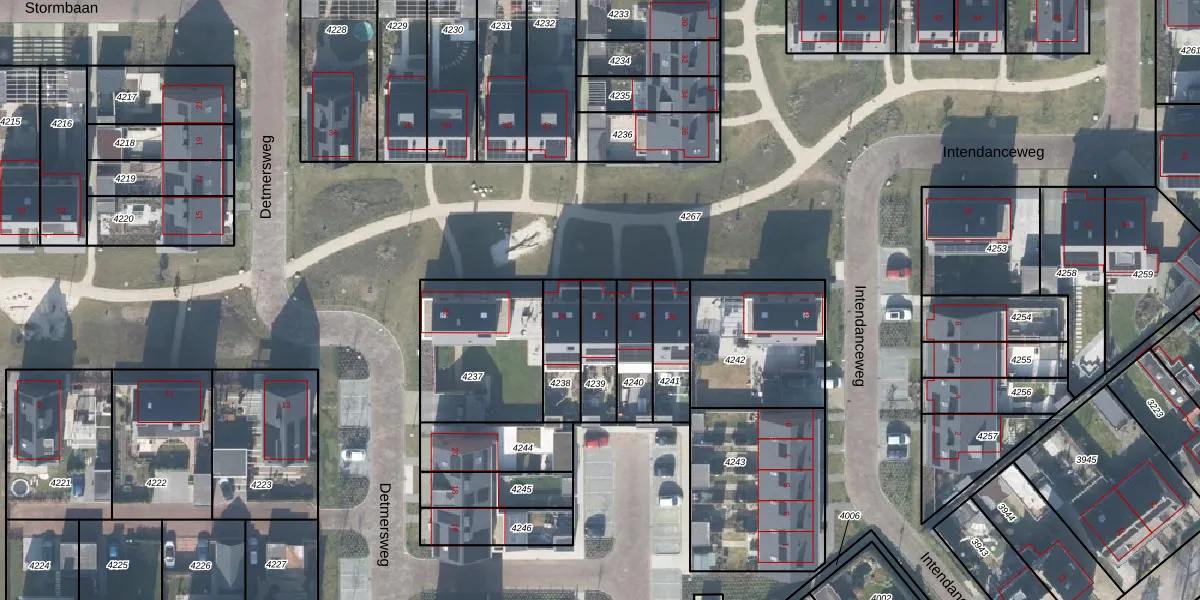 Gebruik de zoekbalk of klik op een perceel voor informatie over de adressen binnen dit perceel.