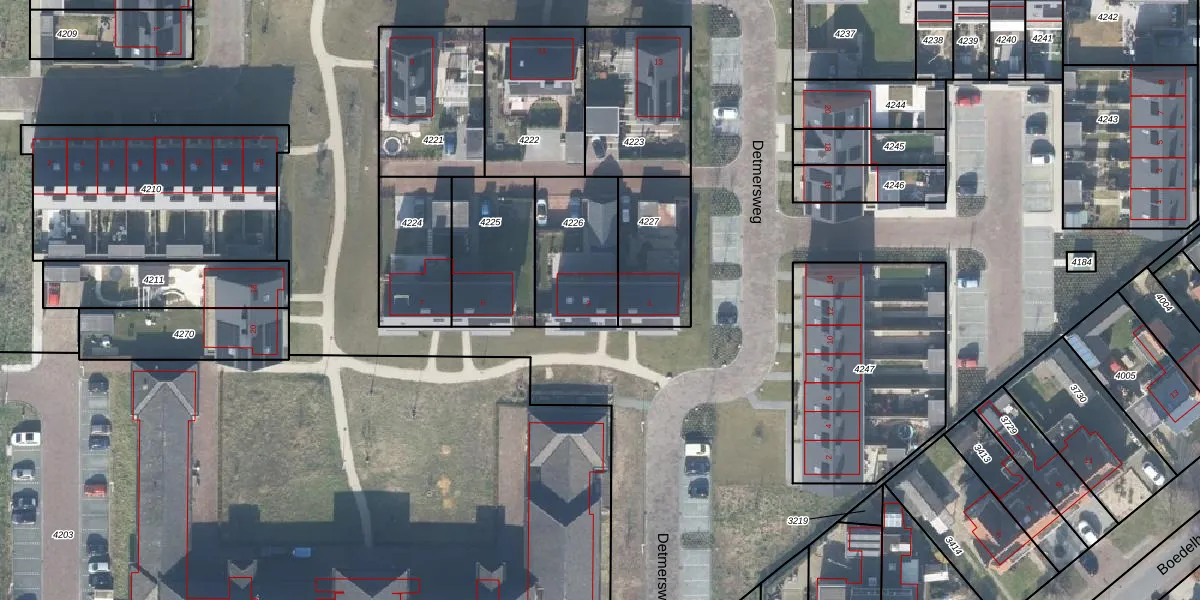 Detmersweg 3 is gelegen op kadastraal perceel GSL01D4226. Deze kadastrale aanduiding is uniek en wordt gebruikt door het Kadaster om eigendomsrechten en andere zakelijke rechten vast te leggen. Het perceel maakt onderdeel uit van de kadastrale gemeente Gorssel.