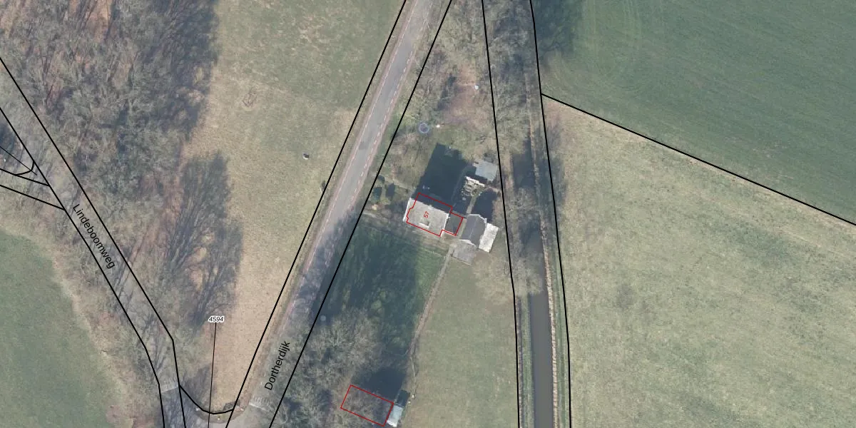 Het perceel waarop Dortherdijk 57 staat heeft een oppervlakte van 8846 m². Dit is een zeer groot perceel. De perceeloppervlakte wordt geregistreerd door het Kadaster. Gedetailleerde informatie over de maten van dit perceel kunt u vinden in het rapport Kadastrale kaart met maatvoering van Dortherdijk 57.
