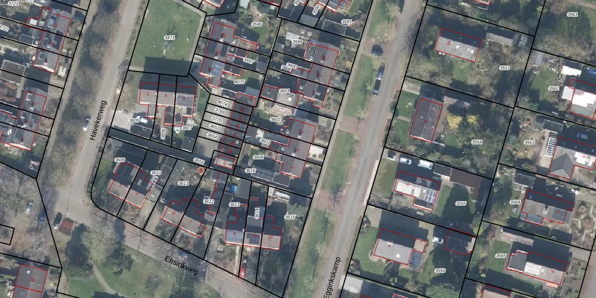 Gebruik de zoekbalk of klik op een perceel voor informatie over de adressen binnen dit perceel.