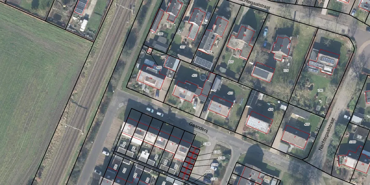 Het perceel waarop Gaanderij 8 staat heeft een oppervlakte van 524 m². Dit is een groot perceel. De perceeloppervlakte wordt geregistreerd door het Kadaster. Gedetailleerde informatie over de maten van dit perceel kunt u vinden in het rapport Kadastrale kaart met maatvoering van Gaanderij 8.