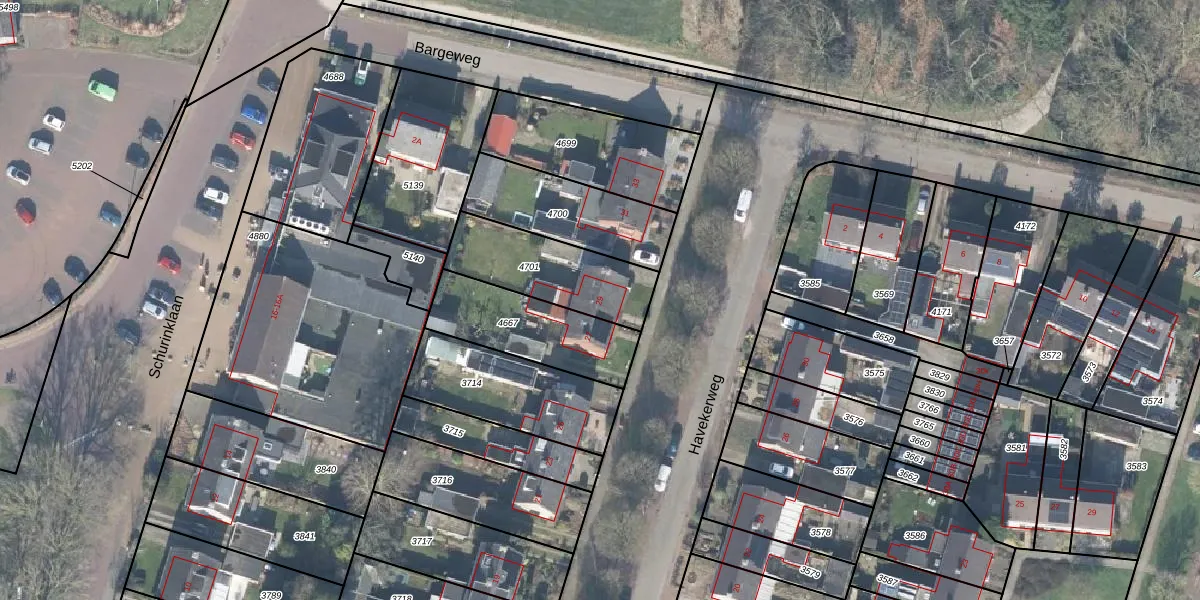 Het perceel waarop Havekerweg 29 staat heeft een oppervlakte van 357 m². Dit is een groot perceel. De perceeloppervlakte wordt geregistreerd door het Kadaster. Gedetailleerde informatie over de maten van dit perceel kunt u vinden in het rapport Kadastrale kaart met maatvoering van Havekerweg 29.