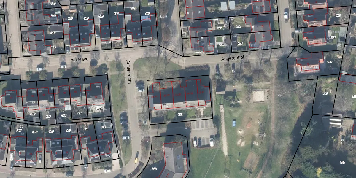 Het perceel waarop het Have 25 staat heeft een oppervlakte van 875 m². Dit is een groot perceel. De perceeloppervlakte wordt geregistreerd door het Kadaster. Gedetailleerde informatie over de maten van dit perceel kunt u vinden in het rapport Kadastrale kaart met maatvoering van het Have 25.