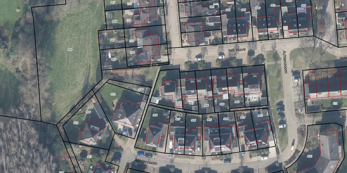 Het perceel waarop het Have 43 staat heeft een oppervlakte van 319 m². Dit is een groot perceel. De perceeloppervlakte wordt geregistreerd door het Kadaster. Gedetailleerde informatie over de maten van dit perceel kunt u vinden in het rapport Kadastrale kaart met maatvoering van het Have 43.
