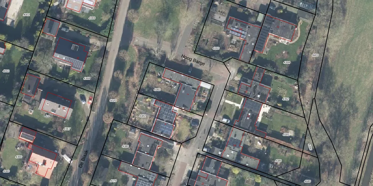 Gebruik de zoekbalk of klik op een perceel voor informatie over de adressen binnen dit perceel.