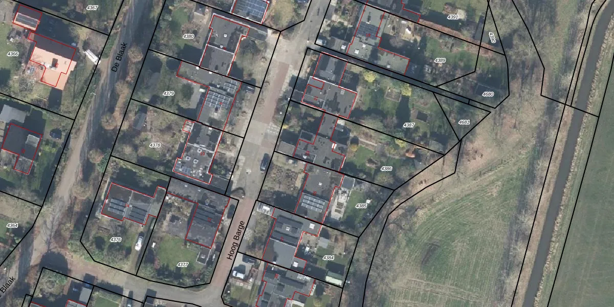 Het perceel waarop Hoog Barge 23 staat heeft een oppervlakte van 820 m². Dit is een groot perceel. De perceeloppervlakte wordt geregistreerd door het Kadaster. Gedetailleerde informatie over de maten van dit perceel kunt u vinden in het rapport Kadastrale kaart met maatvoering van Hoog Barge 23.