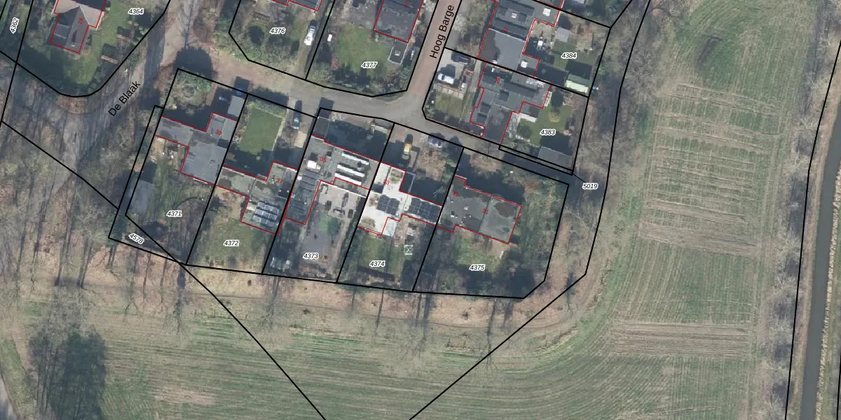 Het perceel waarop Hoog Barge 33 staat heeft een oppervlakte van 680 m². Dit is een groot perceel. De perceeloppervlakte wordt geregistreerd door het Kadaster. Gedetailleerde informatie over de maten van dit perceel kunt u vinden in het rapport Kadastrale kaart met maatvoering van Hoog Barge 33.