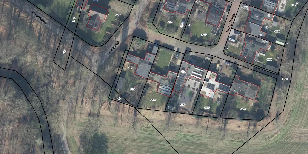 Het perceel waarop Hoog Barge 37 staat heeft een oppervlakte van 725 m². Dit is een groot perceel. De perceeloppervlakte wordt geregistreerd door het Kadaster. Gedetailleerde informatie over de maten van dit perceel kunt u vinden in het rapport Kadastrale kaart met maatvoering van Hoog Barge 37.