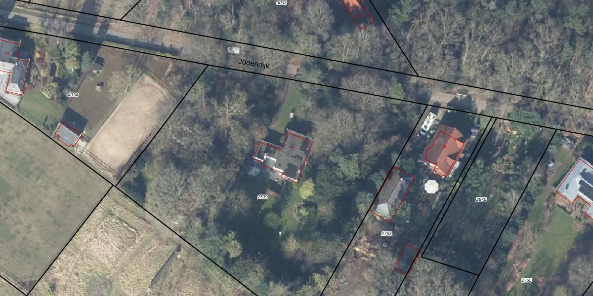 Jodendijk 47 is gelegen op kadastraal perceel GSL01C2539. Deze kadastrale aanduiding is uniek en wordt gebruikt door het Kadaster om eigendomsrechten en andere zakelijke rechten vast te leggen. Het perceel maakt onderdeel uit van de kadastrale gemeente Gorssel.