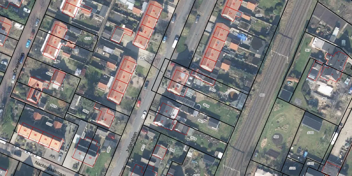 Het perceel waarop Julianalaan 39 staat heeft een oppervlakte van 490 m². Dit is een groot perceel. De perceeloppervlakte wordt geregistreerd door het Kadaster. Gedetailleerde informatie over de maten van dit perceel kunt u vinden in het rapport Kadastrale kaart met maatvoering van Julianalaan 39.