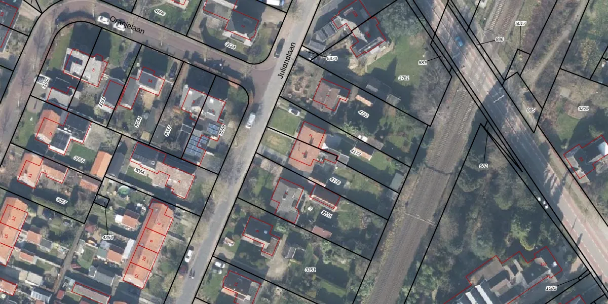 Het perceel waarop Julianalaan 5 staat heeft een oppervlakte van 472 m². Dit is een groot perceel. De perceeloppervlakte wordt geregistreerd door het Kadaster. Gedetailleerde informatie over de maten van dit perceel kunt u vinden in het rapport Kadastrale kaart met maatvoering van Julianalaan 5.
