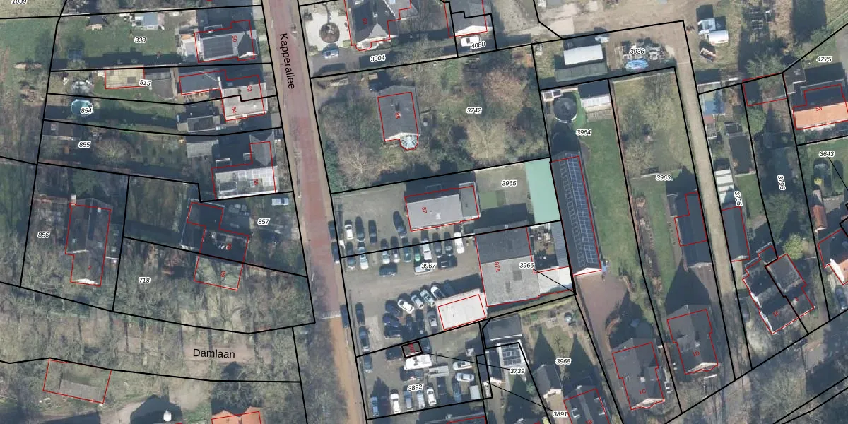 Gebruik de zoekbalk of klik op een perceel voor informatie over de adressen binnen dit perceel.