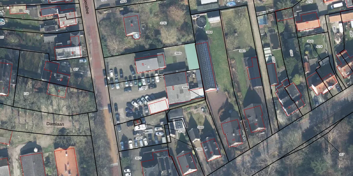 Gebruik de zoekbalk of klik op een perceel voor informatie over de adressen binnen dit perceel.