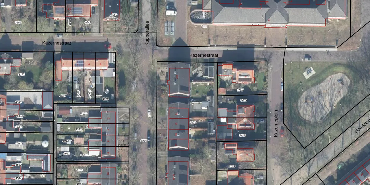 Het perceel waarop Kapperallee 9 staat heeft een oppervlakte van 2387 m². Dit is een zeer groot perceel. De perceeloppervlakte wordt geregistreerd door het Kadaster. Gedetailleerde informatie over de maten van dit perceel kunt u vinden in het rapport Kadastrale kaart met maatvoering van Kapperallee 9.