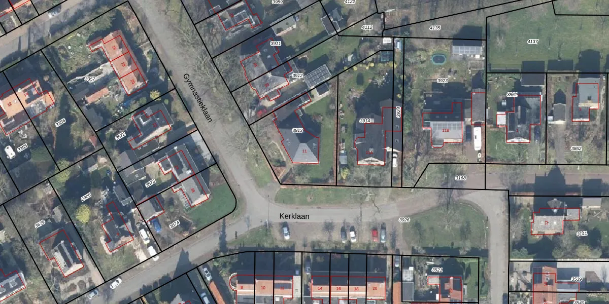 Gebruik de zoekbalk of klik op een perceel voor informatie over de adressen binnen dit perceel.