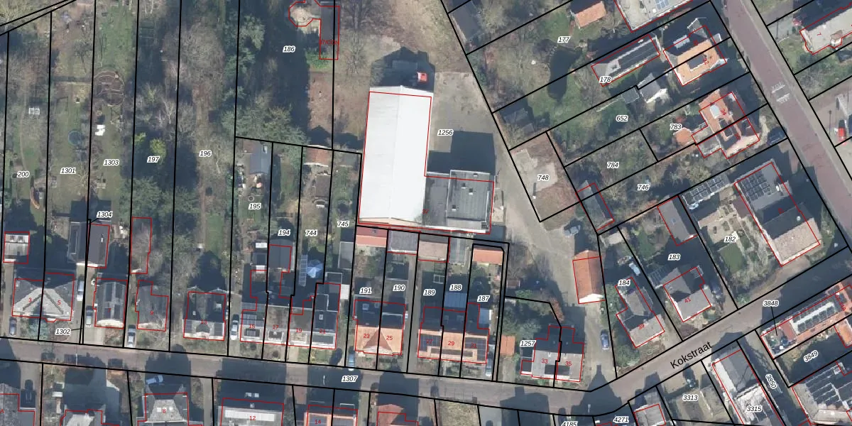 Het perceel waarop Kokstraat 37 staat heeft een oppervlakte van 3170 m². Dit is een zeer groot perceel. De perceeloppervlakte wordt geregistreerd door het Kadaster. Gedetailleerde informatie over de maten van dit perceel kunt u vinden in het rapport Kadastrale kaart met maatvoering van Kokstraat 37.