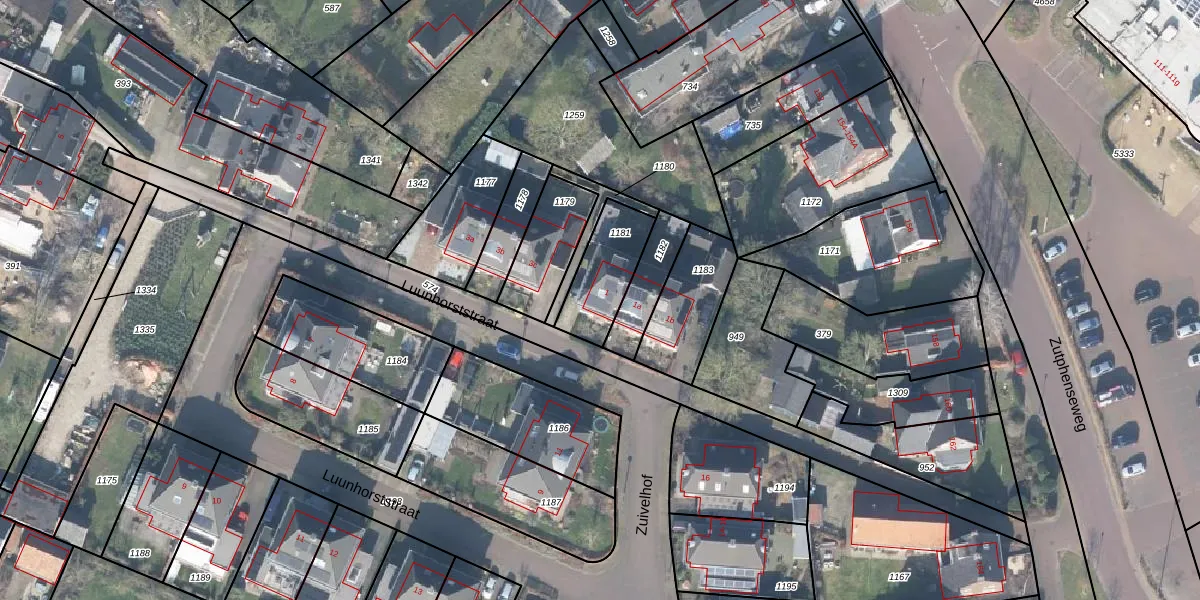 Luunhorststraat 1 is gelegen op kadastraal perceel GSL01L1181. Deze kadastrale aanduiding is uniek en wordt gebruikt door het Kadaster om eigendomsrechten en andere zakelijke rechten vast te leggen. Het perceel maakt onderdeel uit van de kadastrale gemeente Gorssel.