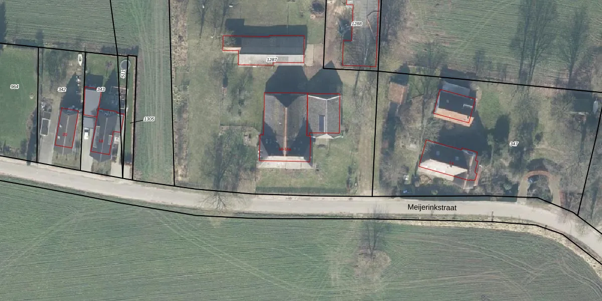 Het perceel waarop Meijerinkstraat 16 staat heeft een oppervlakte van 4440 m². Dit is een zeer groot perceel. De perceeloppervlakte wordt geregistreerd door het Kadaster. Gedetailleerde informatie over de maten van dit perceel kunt u vinden in het rapport Kadastrale kaart met maatvoering van Meijerinkstraat 16.