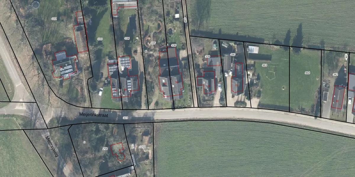 Het perceel waarop Meijerinkstraat 30 staat heeft een oppervlakte van 710 m². Dit is een groot perceel. De perceeloppervlakte wordt geregistreerd door het Kadaster. Gedetailleerde informatie over de maten van dit perceel kunt u vinden in het rapport Kadastrale kaart met maatvoering van Meijerinkstraat 30.