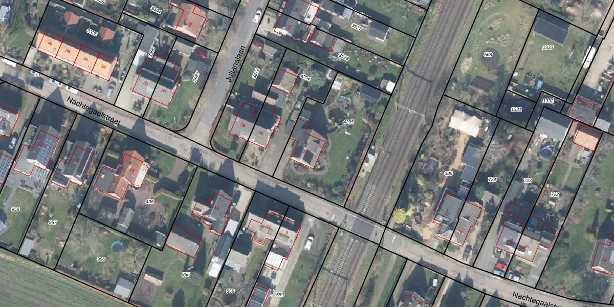 Het perceel waarop Nachtegaalstraat 24 staat heeft een oppervlakte van 906 m². Dit is een groot perceel. De perceeloppervlakte wordt geregistreerd door het Kadaster. Gedetailleerde informatie over de maten van dit perceel kunt u vinden in het rapport Kadastrale kaart met maatvoering van Nachtegaalstraat 24.