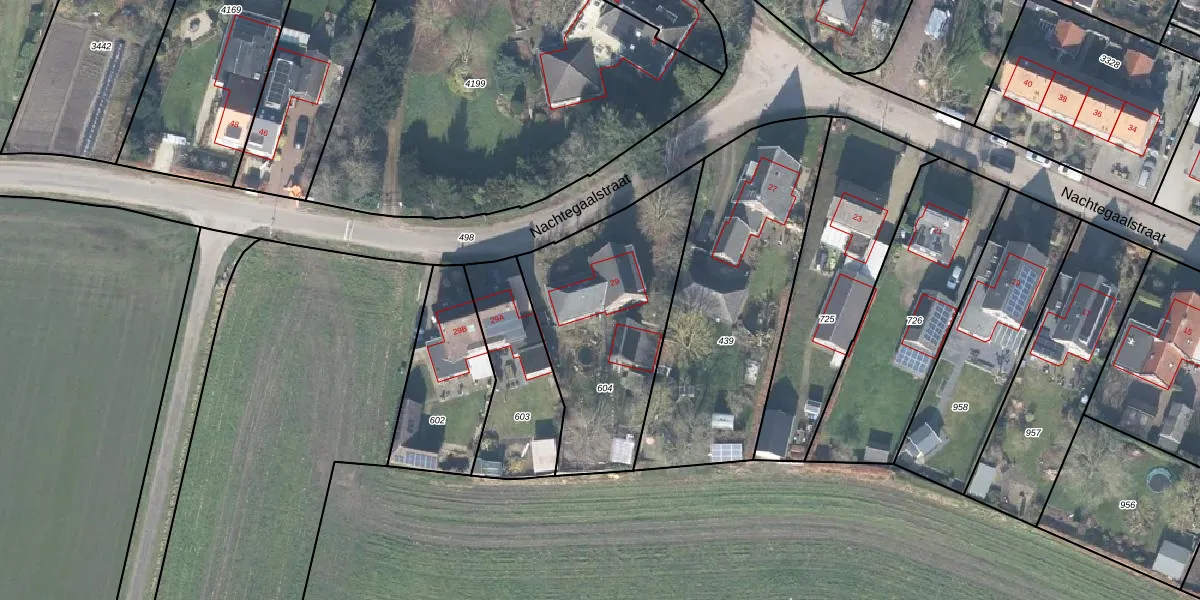 Nachtegaalstraat 29 is gelegen op kadastraal perceel GSL01L604. Deze kadastrale aanduiding is uniek en wordt gebruikt door het Kadaster om eigendomsrechten en andere zakelijke rechten vast te leggen. Het perceel maakt onderdeel uit van de kadastrale gemeente Gorssel.