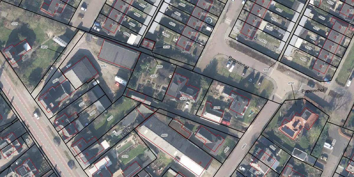 Gebruik de zoekbalk of klik op een perceel voor informatie over de adressen binnen dit perceel.