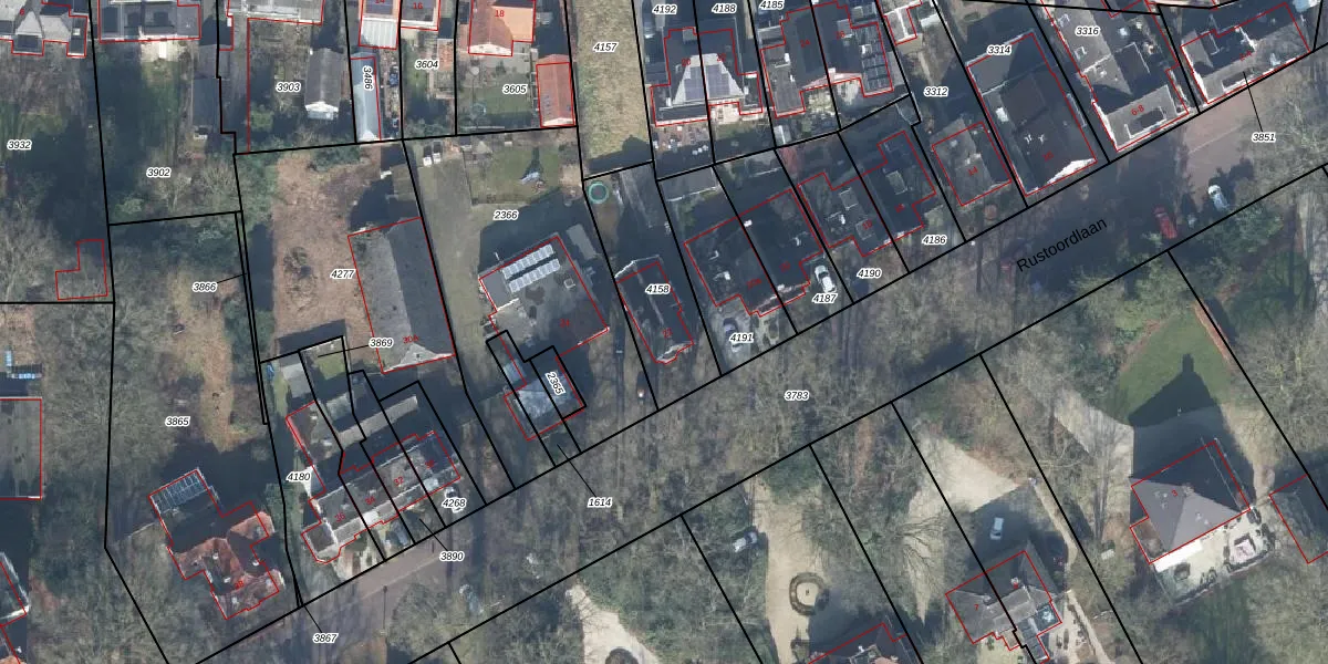 Het perceel waarop Rustoordlaan 22 staat heeft een oppervlakte van 380 m². Dit is een groot perceel. De perceeloppervlakte wordt geregistreerd door het Kadaster. Gedetailleerde informatie over de maten van dit perceel kunt u vinden in het rapport Kadastrale kaart met maatvoering van Rustoordlaan 22.