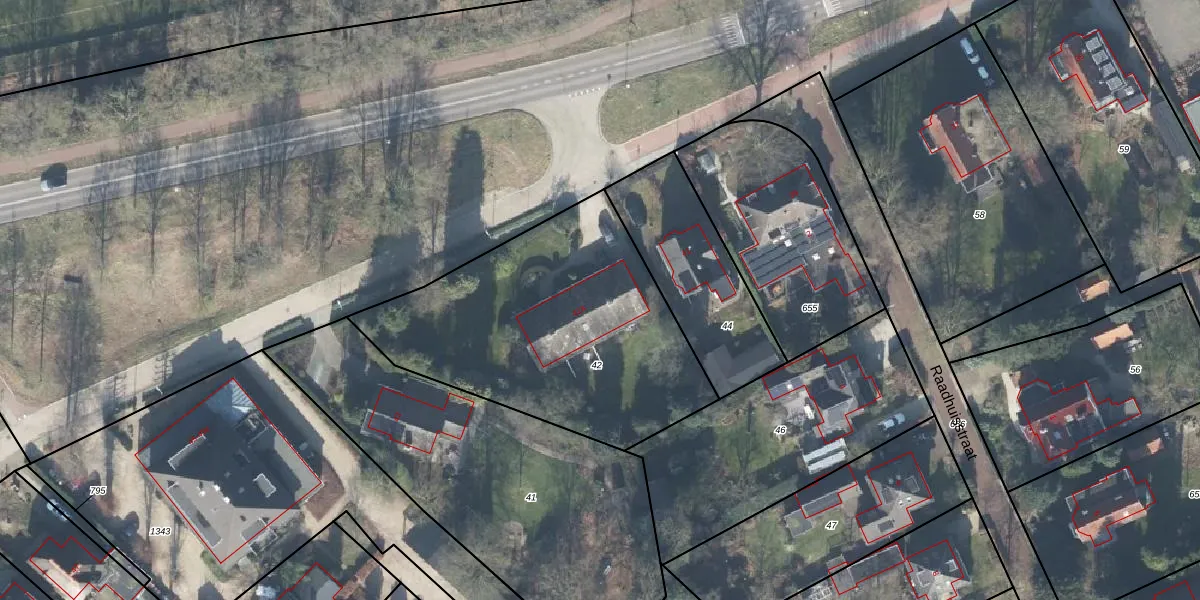 Gebruik de zoekbalk of klik op een perceel voor informatie over de adressen binnen dit perceel.