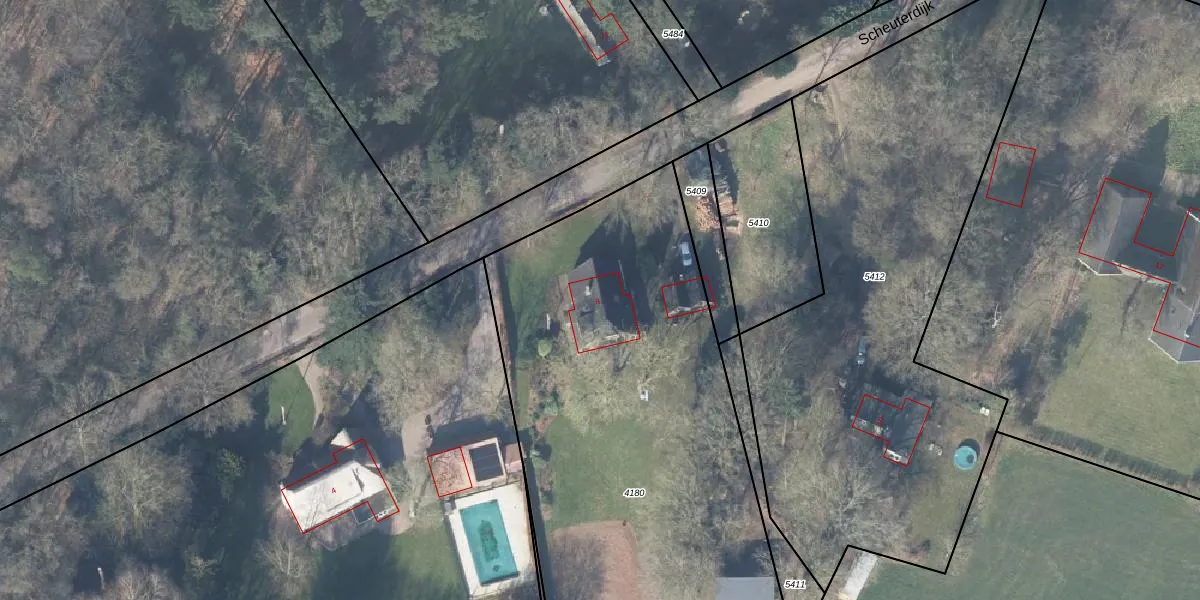 Het perceel waarop Scheuterdijk 8 staat heeft een oppervlakte van 3290 m². Dit is een zeer groot perceel. De perceeloppervlakte wordt geregistreerd door het Kadaster. Gedetailleerde informatie over de maten van dit perceel kunt u vinden in het rapport Kadastrale kaart met maatvoering van Scheuterdijk 8.