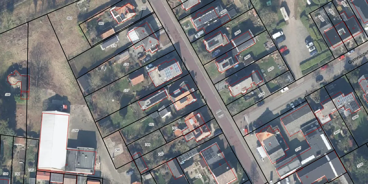 Gebruik de zoekbalk of klik op een perceel voor informatie over de adressen binnen dit perceel.