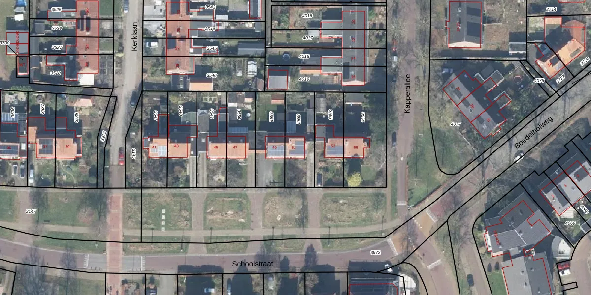 Het perceel waarop Schoolstraat 51 staat heeft een oppervlakte van 323 m². Dit is een groot perceel. De perceeloppervlakte wordt geregistreerd door het Kadaster. Gedetailleerde informatie over de maten van dit perceel kunt u vinden in het rapport Kadastrale kaart met maatvoering van Schoolstraat 51.