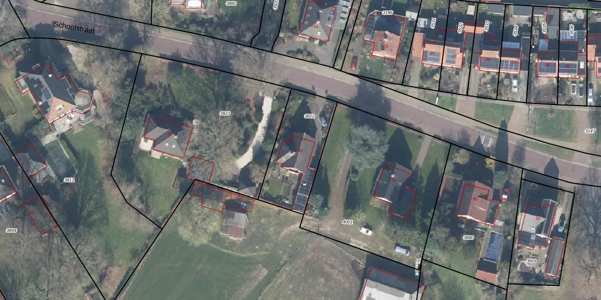 Schoolstraat 52 is gelegen op kadastraal perceel GSL01D3822. Deze kadastrale aanduiding is uniek en wordt gebruikt door het Kadaster om eigendomsrechten en andere zakelijke rechten vast te leggen. Het perceel maakt onderdeel uit van de kadastrale gemeente Gorssel.
