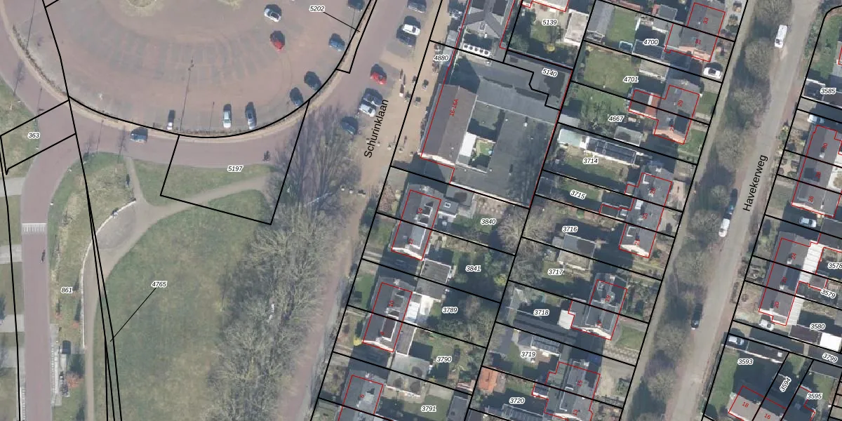 Het perceel waarop Schurinklaan 14 staat heeft een oppervlakte van 401 m². Dit is een groot perceel. De perceeloppervlakte wordt geregistreerd door het Kadaster. Gedetailleerde informatie over de maten van dit perceel kunt u vinden in het rapport Kadastrale kaart met maatvoering van Schurinklaan 14.
