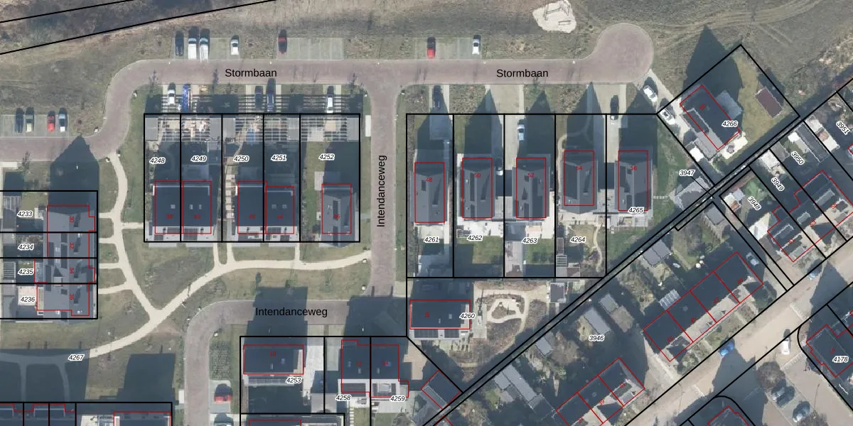 Gebruik de zoekbalk of klik op een perceel voor informatie over de adressen binnen dit perceel.