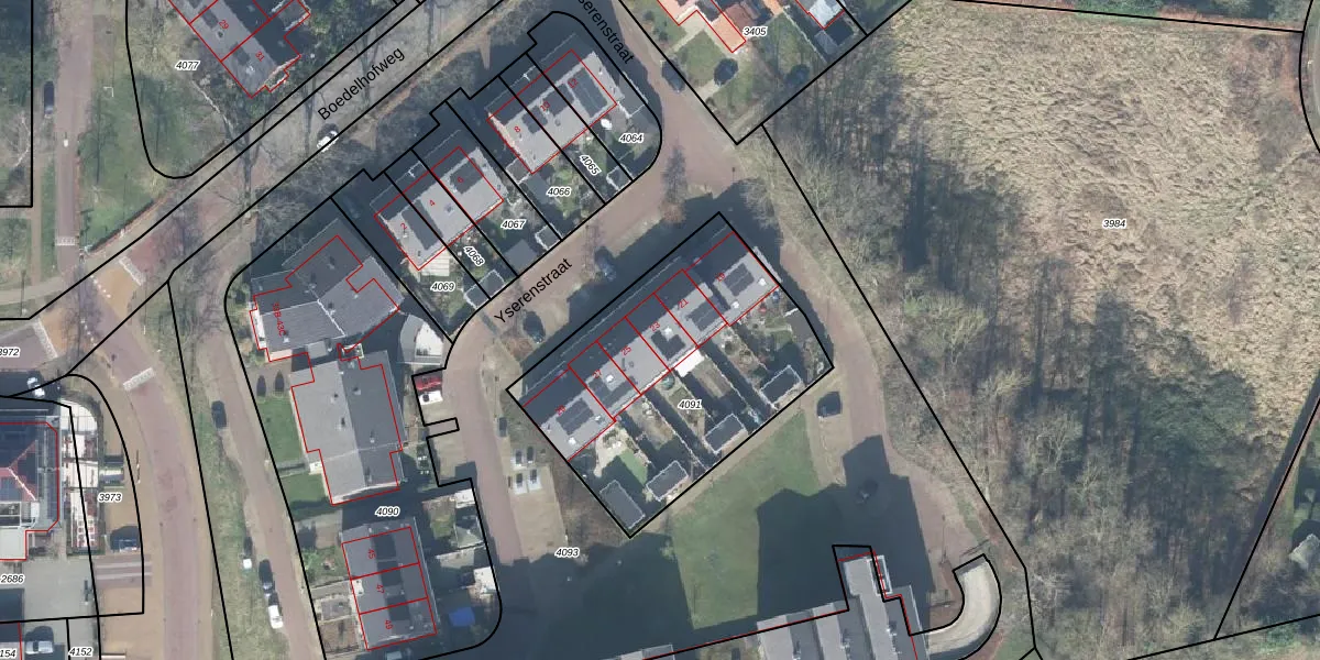 Het perceel waarop Yserenstraat 23 staat heeft een oppervlakte van 1215 m². Dit is een zeer groot perceel. De perceeloppervlakte wordt geregistreerd door het Kadaster. Gedetailleerde informatie over de maten van dit perceel kunt u vinden in het rapport Kadastrale kaart met maatvoering van Yserenstraat 23.