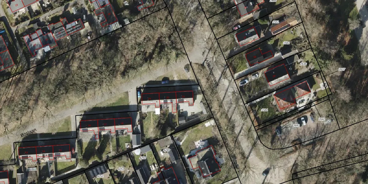 Het perceel waarop Boslaan 21 staat heeft een oppervlakte van 5880 m². Dit is een zeer groot perceel. De perceeloppervlakte wordt geregistreerd door het Kadaster. Gedetailleerde informatie over de maten van dit perceel kunt u vinden in het rapport Kadastrale kaart met maatvoering van Boslaan 21.