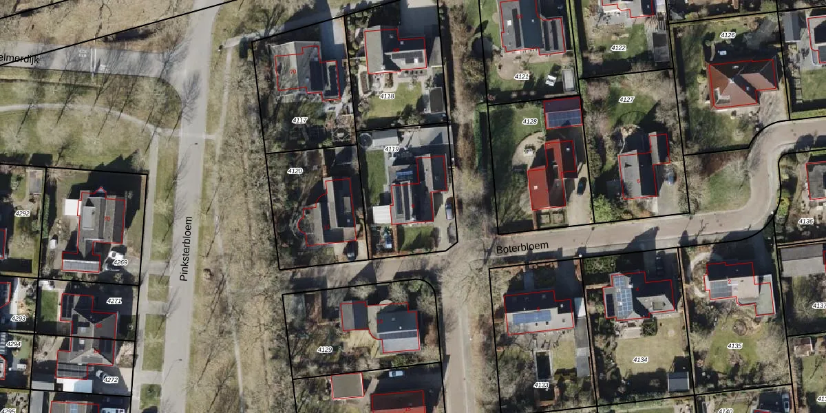 Gebruik de zoekbalk of klik op een perceel voor informatie over de adressen binnen dit perceel.